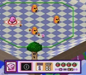 – Get ready for one of the most surprising Kirby games imaginable! In this fun Super NES golf game – yes, it’s a Kirby golf game – control the force and angle of your shot and sink Kirby for a hole-in-one. Play through various stages and acquire classic power-ups to get the lowest score possible. (In this game, a low score is a GOOD thing.)